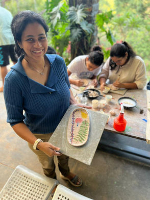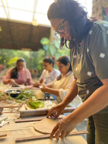 Flow of the days 24th July Thursday Check-in 1-2 PM Lunch 3-4 PM Introduction to Pottery, Clay, Techniques, Pinch a bowl with Garima 4-5 PM Blue tea with Amruta 8-10 PM Dinner 25th July Friday 8-9 PM Breakfast 10-12 PM Hand-building plates using slab technique 1-2 PM Lunch 3-4 PM Sgrafitto technique of painting and carving plates 4-5 PM Tea 5-6 PM Paper making with Pankaj (optional) or take the time to explore the lake and surroundings 7 PM Bon Fire 8-10 PM Dinner 26th July Saturday 8-9 PM Breakfast 10-12 PM Hand-building plates using slab technique and moulds 1-2 PM Lunch 3-4 PM Relief technique of decorating plates 4-5 PM Tea Walk around the property, lake, rural studio, kiln room 7-10 PM Community Dinner with Amruta 25th July Friday 8-9 PM Breakfast Check out